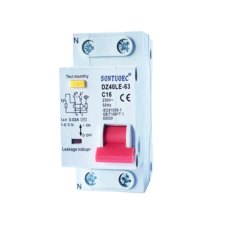 Ang prinsipyo ng operating ng 2p 1p+n residual circuit breaker na may labis na proteksyon ay batay sa vector sum of currents at ang electromagnetic prinsipyo. Kapag ang mga alon sa mga linya ng L (sunog) at N (zero) sa circuit ay hindi pantay sa magnitude, ang vector sum of currents sa pangunahing bahagi ng transpormer circuit ay hindi zero, na bumubuo ng isang sapilitan na boltahe sa pangalawang bahagi coil. Ang sapilitan na boltahe na ito ay idinagdag sa electromagnetic relay, na bumubuo ng isang paggulo ng kasalukuyang lumilikha ng isang reverse demagnetizing force. Kapag ang kasalukuyang kasalanan ay umabot sa operating kasalukuyang halaga ng RCBO, ang reverse demagnetizing na puwersa na ito ay magiging sanhi ng armature sa loob ng electromagnetic relay sa disengage mula sa pamatok, itulak ang mekanismo ng operating upang kumilos at putulin ang kasalanan ng kasalukuyang circuit.