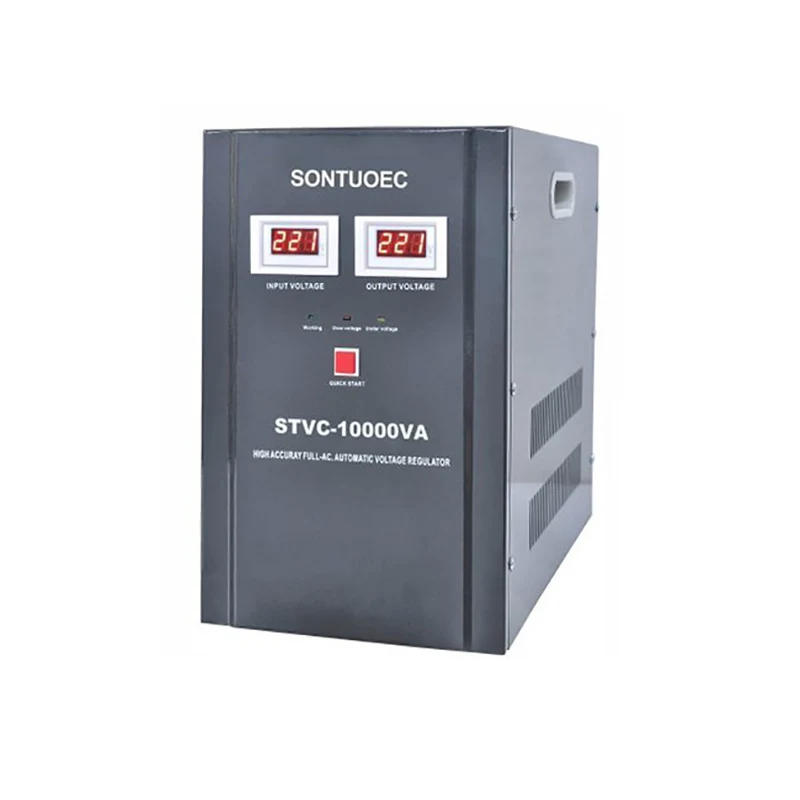 Ang Sontuoec Mataas na kalidad na awtomatikong boltahe ng regulator ng boltahe ay isang uri ng aparato ng pamamahala ng kuryente, na ang pangunahing pag -andar ay awtomatikong masubaybayan ang mga pagbabago ng boltahe ng input at gumawa ng mabilis na pagsasaayos sa pamamagitan ng mga panloob na circuit o mekanismo upang matiyak na ang boltahe ng output ay pinananatili sa loob ng isang preset na matatag na saklaw. Ang aparatong ito ay may malawak na hanay ng mga aplikasyon sa mga sistema ng kuryente, lalo na sa mga kapaligiran na may malaking pagbabagu -bago ng boltahe, tulad ng mga liblib na lugar, mga linya ng produksyon ng industriya, at mga sentro ng data.