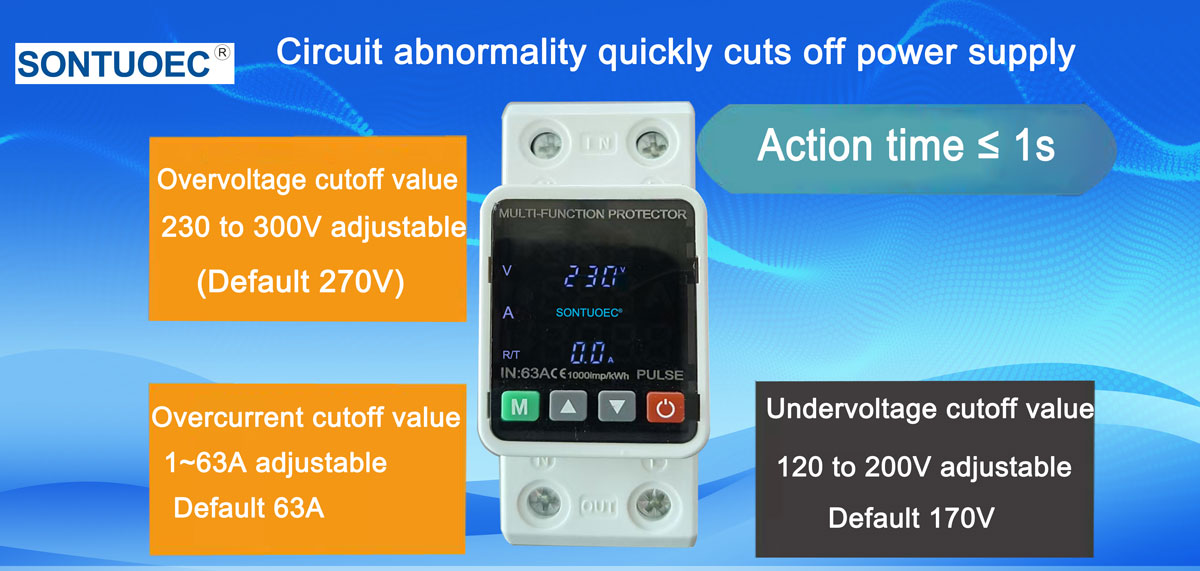 Ang Sontuoec ay isa sa mga supplier/tagagawa ng Tsino na dalubhasa sa paggawa ng iba't ibang mga maliliit na kagamitan sa elektrikal Ang digital tube display overvoltage at undervoltage boltahe na protektor ay sumusunod sa mga pamantayan sa disenyo ng modular. Ang mga circuit board ng mga produkto ay nagpatibay ng mahusay na kalidad ng mga elektronikong sangkap na may maaasahang pagganap. Kapag ang sitwasyon ng kapangyarihan ay hindi matatag. Ang pag -andar ng proteksyon ay awtomatikong isinaaktibo. Kapag ang boltahe ay lumampas sa limitadong hanay ng mga produkto, mayroon itong pag -andar ng kasalukuyang limitadong proteksyon; Ito ay awtomatikong putulin upang maprotektahan ang ligtas ng mga de -koryenteng kagamitan at mga tao.
