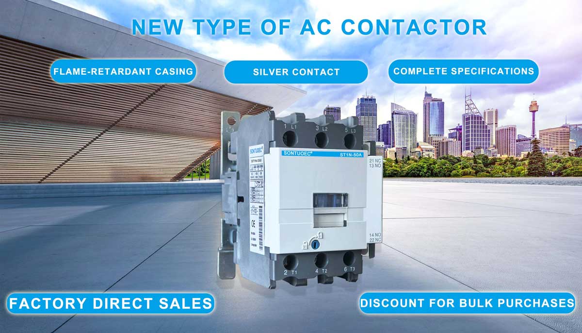 Ang Sontuoec ay isa sa mga supplier/tagagawa ng Tsino na dalubhasa sa paggawa ng iba't ibang mga maliliit na kagamitan sa elektrikal na ST1N series AC contactor ay angkop para sa paggamit sa mga circuit ang na -rate na boltahe hanggang sa 660V AC 50Hz o 60Hz, na -rate ang kasalukuyang hanggang sa 95A, para sa paggawa at pagsira, madalas na nagsisimula at kumokontrol sa motor ng AC. Pinagsama sa auxiliary contact block, timer pagkaantala at machine-interlocking aparato atbp, ito ay nagiging pagkaantala ng contactor, mechanical interlocking contactor, star-delta starter. Gamit ang thermal relay, pinagsama ito sa electromagnetic starter. Ang contactor ay ginawa ayon sa IEC 60947-1.