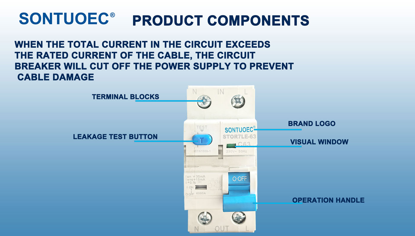 Proteksyon ng Leakage: Ang Stro7Le-63 RCBO ay may kakayahang makita ang natitirang kasalukuyang (i.e., leakage kasalukuyang) sa isang circuit. Kapag ang natitirang kasalukuyang ay lumampas sa set threshold, ang Stro7Le-63 RCBO ay putulin ang circuit sa isang napakaikling panahon upang maiwasan ang mga aksidente sa electrocution at mga de-koryenteng sunog.