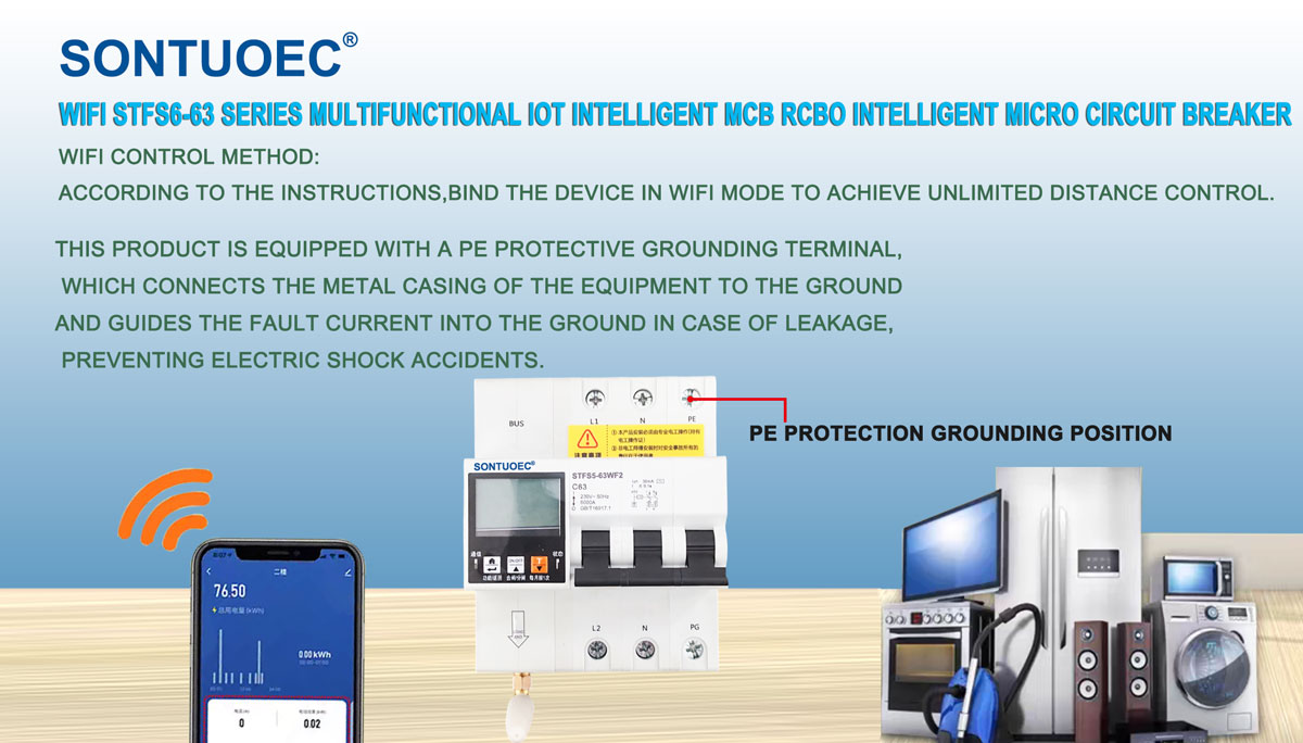 Ang produkto ay nilagyan ng isang PE proteksyon na grounding terminal, na nag -uugnay sa metal na pambalot ng kagamitan sa lupa at ginagabayan ang kasalanan na kasalukuyang sa lupa kung sakaling tumagas, na pumipigil sa mga aksidente sa pagkabigla ng electric. Kung pinaplano mong i -upgrade ang iyong elektrikal na sistema, lumikha ng isang matalinong bahay, o bumili ng maaasahang kagamitan sa pamamahagi ng kuryente para sa mga komersyal na puwang tulad ng mga tirahan ng tirahan, maliit na komersyal na lugar, mga sistema ng kontrol sa industriya, atbp, maaari mong isaalang -alang ang pagbili ng Sontuoec WiFi Smart Circuit Breakers.